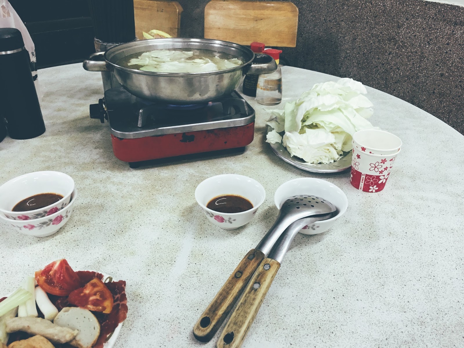 所以只拍了一張正在等湯滾的小豪州鍋子高麗菜和半盤火鍋料