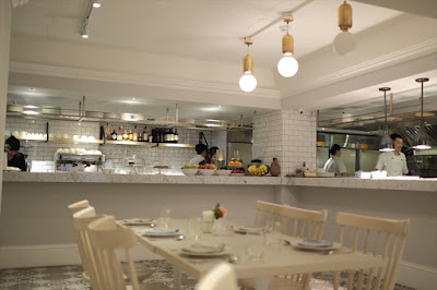 整體的裝潢很乾淨、素材簡單,幾何圖形地磚讓整體感覺更活潑一些