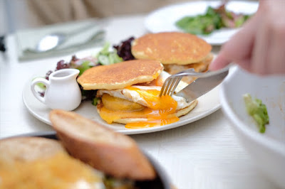 就是pancake那種美式鬆餅夾著豬肉漢堡排與半熟蛋