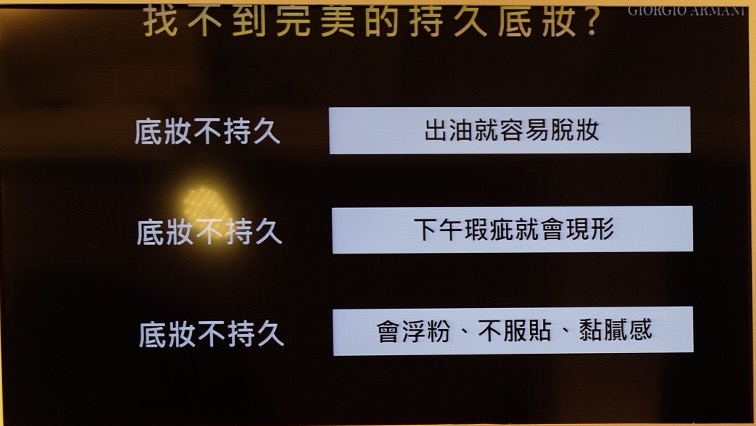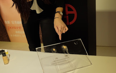 當天有彩妝師幫忙選色和上妝,這次亞洲共有六色,我選的是比較白皙的3號。上妝時,使用一粒米(約5mm)約是半臉的量,輕點在臉上抹勻,之後再使用指腹輕拍(像是拍氣墊粉餅那種感覺)