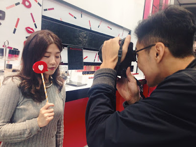影音互動區有可以錄製5秒鐘的可愛短片及和充滿水晶糖唇釉的背板拍照