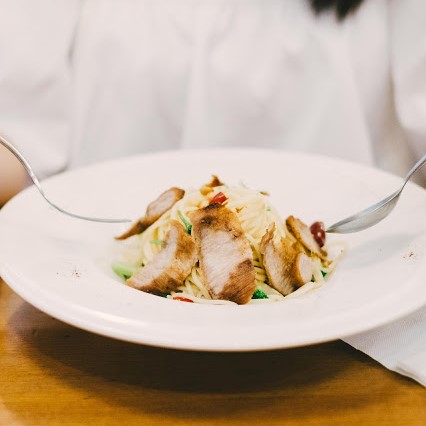 清炒系列就是以橄欖油為基底,搭配蒜片、松子、橄欖、九層塔等佐料下去爆炒而且BLUE HOUSE使用的都是天使細麵,比一般的直麵更細,更有味道。