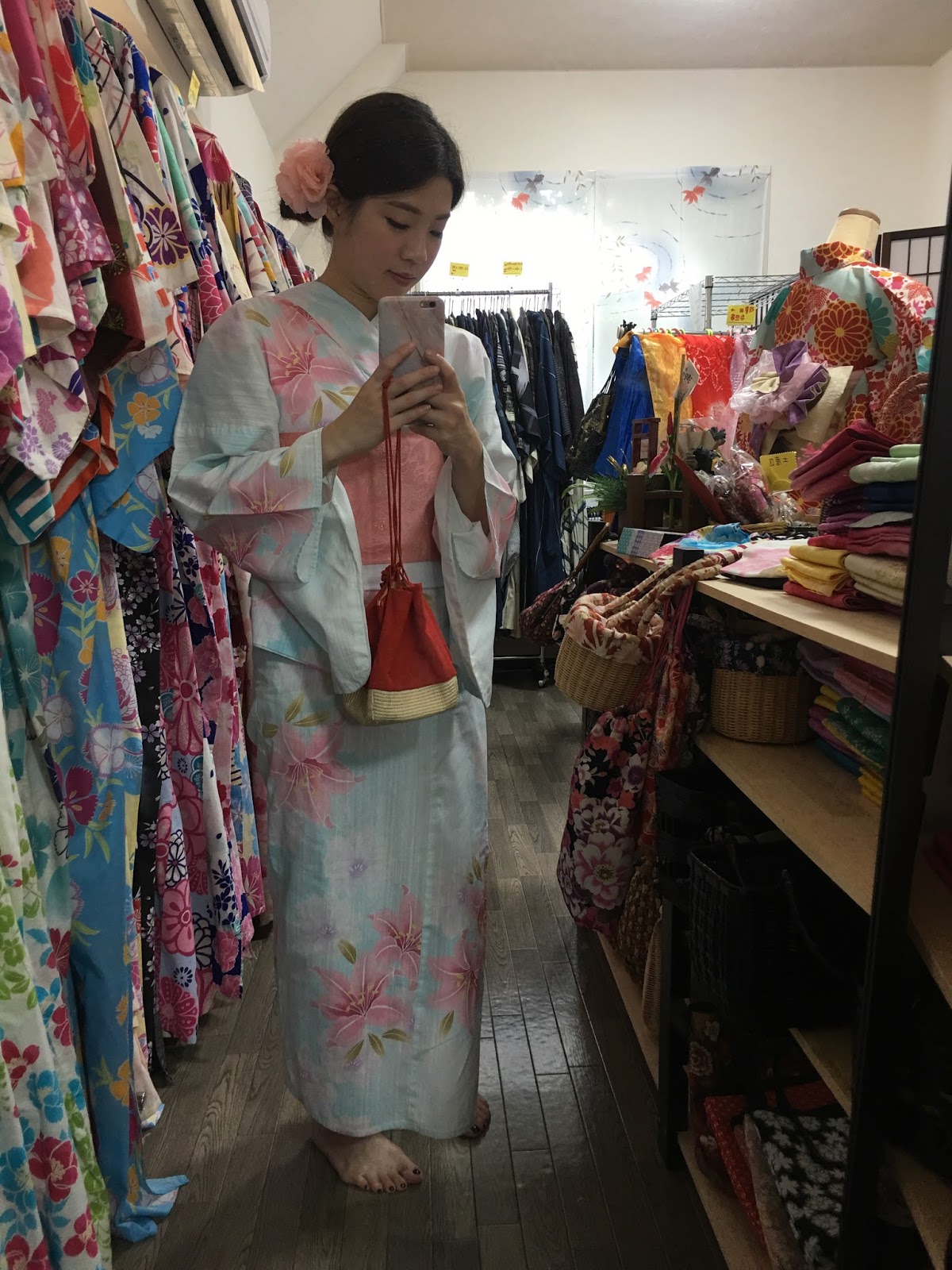 我選的是¥4000的套組,並升級¥500浴衣款式的選擇更多,不過打卡亦可免費升級,所以最後加上盤髮,這次的體驗總共是¥4500