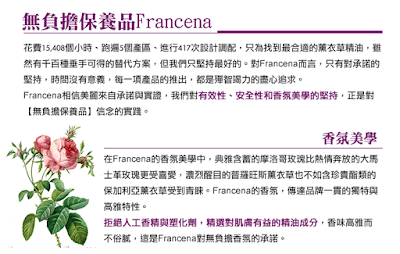 FRANCENA法蘭西娜是台灣的美妝保養品牌,主打無負擔的保養品